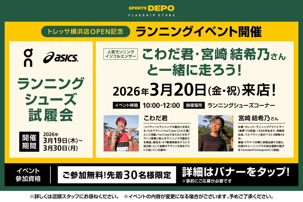 売り場約1,000坪に200ブランド10万点が集結 県内最大級の体験型スポーツストアが横浜に誕生 「スポーツデポフラッグシップストア トレッサ横浜店」が3月6日(金)グランドオープン!