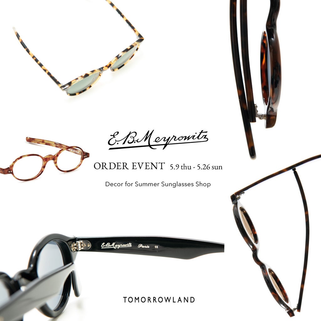 5月9日~5月26日までの期間、トゥモローランド渋谷本店にてル・コルビュジェやクロード・モネなど、多くの著名な文化人が愛用したフランスのアイウェアブランド〈E.B. Meyrowitz〉の受注会を開催