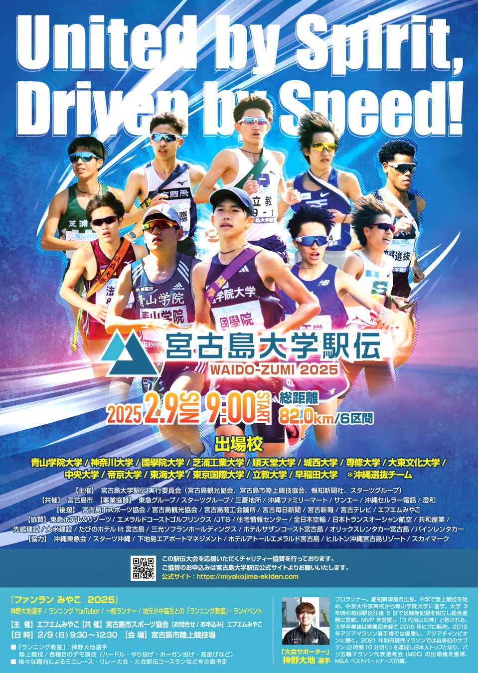 主催:宮古島大学駅伝 ワイド―・ズミ2025 実行委員会(宮古島観光協会、宮古島市陸上競技協会、報知新聞社、スターツグループ)