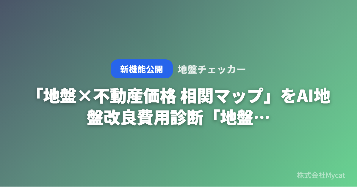 株式会社Mycat(本社:東京都目黒区)は、AI地盤改良費用診断「地盤チェッカー」(https://jiban.xyz)において、地盤×不動産価格 相関マップ(https://jiban.xyz/tools/ground-value-map)を新たに公開しました。