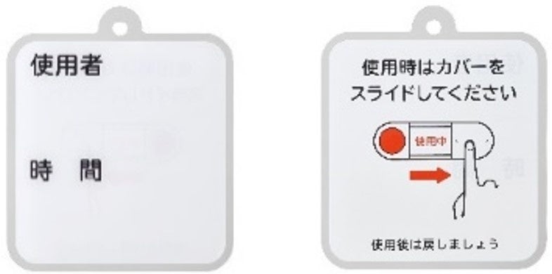 使用方法を記載したメッセージシートと、使用者や使用時間を書き込んで情報共有に使えるタイムシートが付属しています。タイムシートは、ホワイドボードマーカーで繰り返し使用できます。