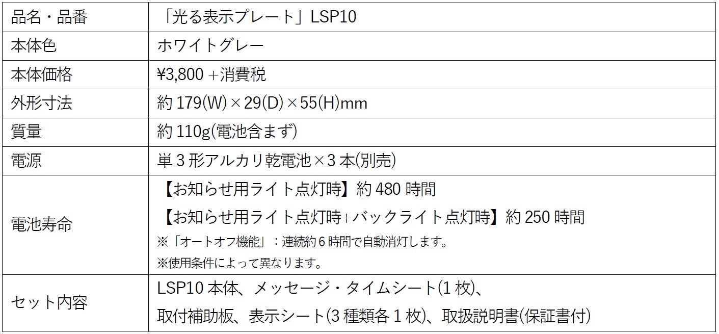 「光る表示プレート」は会議室や個室、共有スペースの使用状況をライトで知らせる表示プレートです。本体のカバーをスライドするとライトが点灯するので使用状況をひと目で判断することができます。表示シートは「使用中・空室」のほか、無地シートを使って表示をカスタマイズすることも可能です。また、両面で使用できるメッセージ・タイムシートを付属しています。メッセージシート面にはプレートの使用方法が記載されているため、誰でも使い方が分かるようになっています。タイムシート面には使用者や使用時間を書き込んで情報共有に使えます。取付けは本体背面のマグネットで行えるほか、付属の取付補助板を用いて市販のねじ、またはテープで木製扉などにも設置できます。