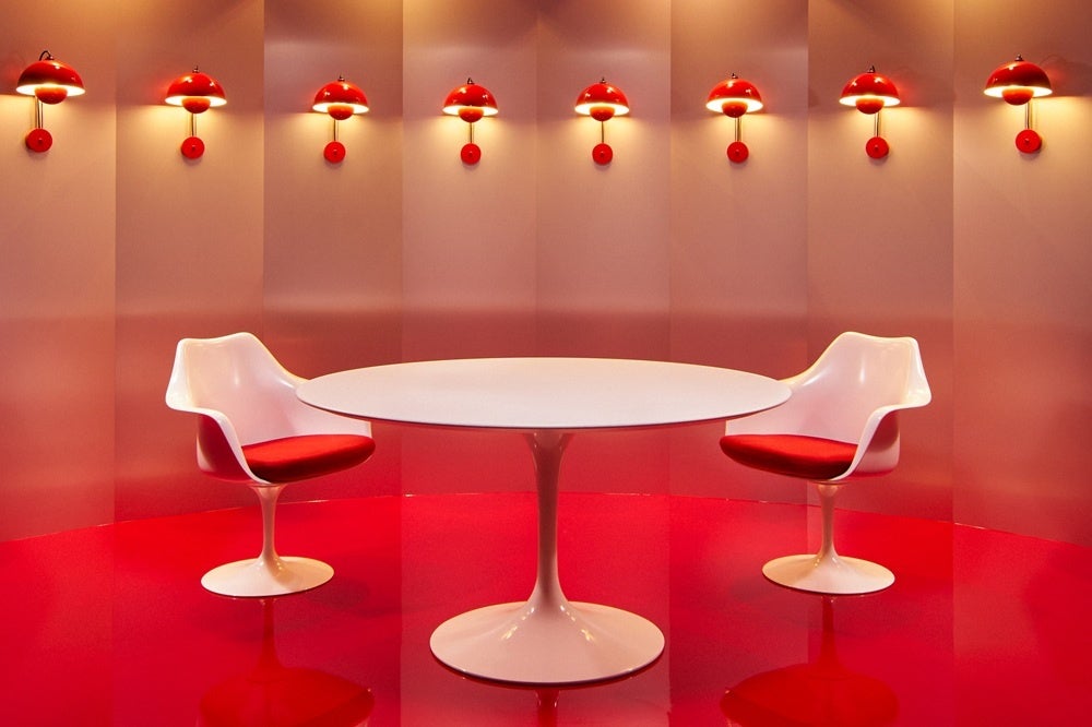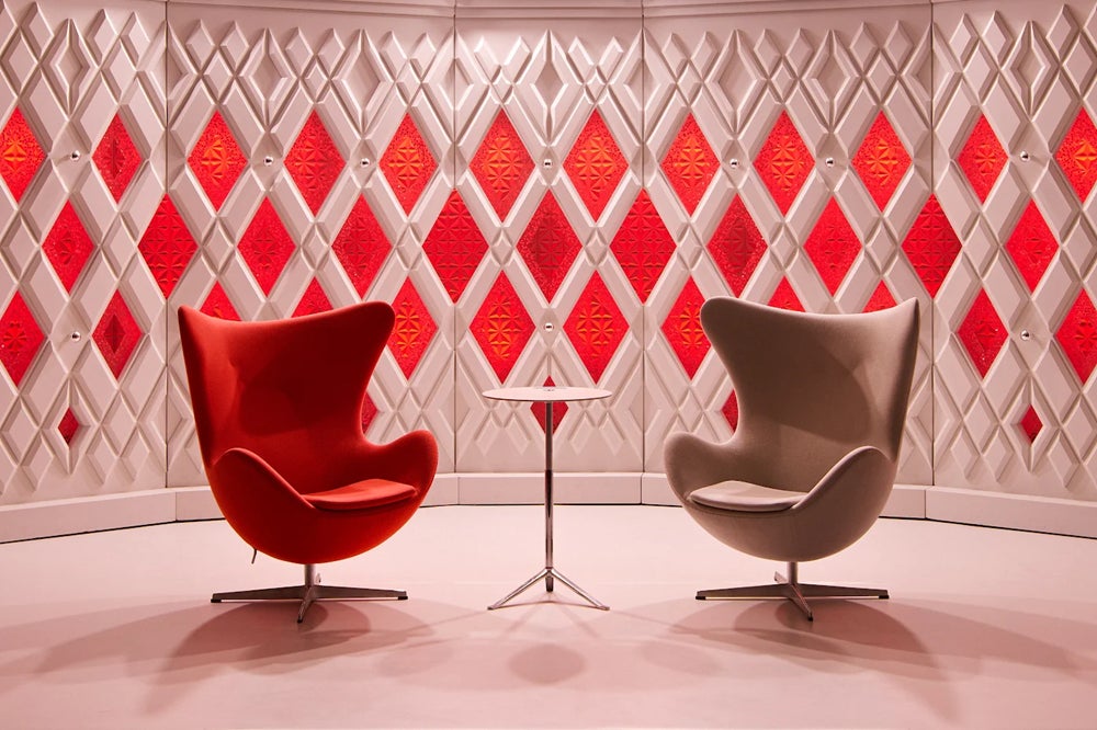 新設したスタジオは、「クラシック」と「スペースエイジ」をテーマに設計しました。生成AIの台頭により、誰もがデザインやコンテンツを手軽に生み出せる時代となった今、空間そのものの本質的な質が問われると考えました。そこで新スタジオには「本物」の素材と家具を採用。ウイスキーチェア、チューリップチェア、エッグチェアなど、いくつもの名作家具が贅沢に配置されています。