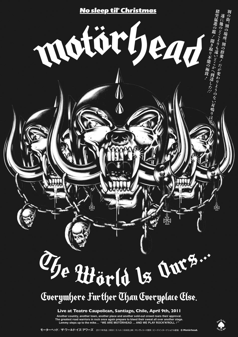 2011年|製作国不明|87分|日本語字幕|/5.1ch|原題:Motörhead/The Wörld Is Ours…Everywhere Further Than Everyplace Else