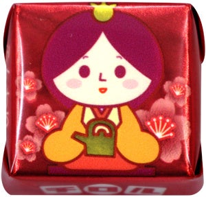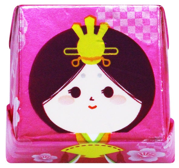 外箱を組み立てると立体的なひな壇に変身する、ひなまつり限定商品。個包装にはひな人形イラストをひな壇に飾って楽しめます。
