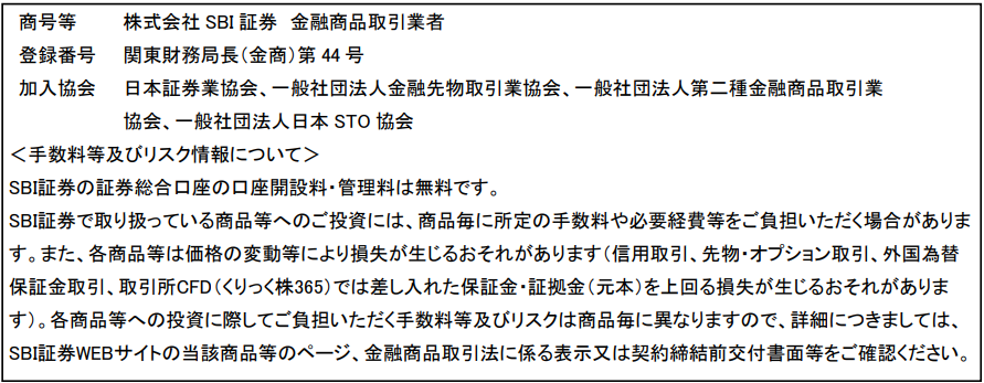 ●SBI証券に開設されたお客さまご本人名義の証券口座におけるお取り引きにつきましてはSBI証券が定める取引約款等に従うものとし、新生銀行はお取り引きに関しては一切関知いたしません。