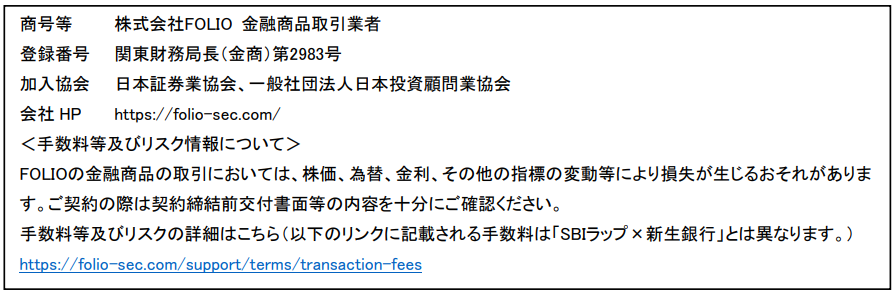 ●FOLIO、SBI証券および新生銀行は、同じSBIグループに属するグループ会社です。