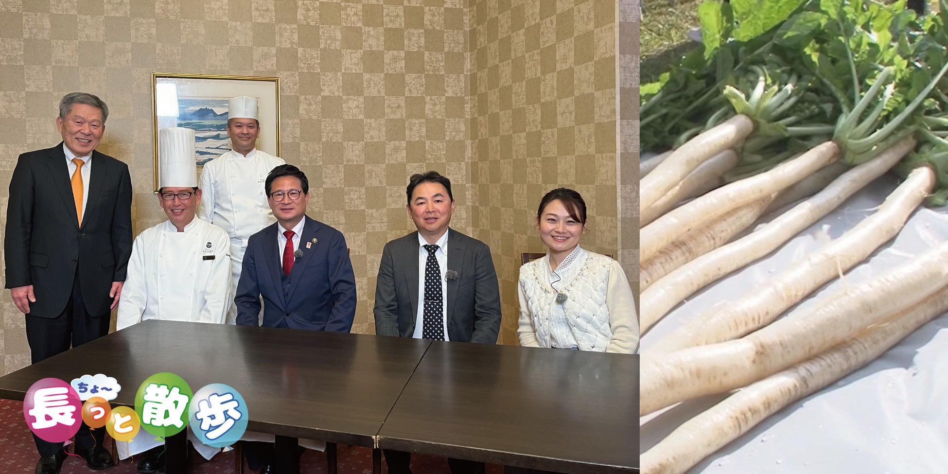 数量限定で販売する薬膳スープは、地元守口市の伝統野菜「守口大根」と、なつめやクコの実、白きくらげなど栄養価の高い食材を組み合わせた、健康的で体に優しい一品です。守口大根のシャキシャキした食感と素材本来の風味を引き立て、ヘルシーながら満足感のある味わいをご堪能いただけます。このオリジナルメニューは、2025年2月1日(土)から1カ月間、 「J:COMチャンネル」(地デジ11ch)の地域情報番組『長っと散歩 北河内』で紹介されます。放送では、市長自らまちの案内人となり、室町時代から続く希少種「守口大根」の魅力や、伝統野菜を未来につなげる地域の取り組みをお伝えしています。ホテル アゴーラ 大阪守口でのおすすめメニューを総支配人や総料理長とともに紹介し、この地元伝統野菜の魅力を広めています。今回、放送を記念し、本日2025年2月5日(水)より、「中国料理 麗花」にて守口大根を使用した薬膳スープを数量限定でご提供します。