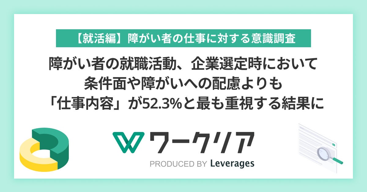 障がい者の就職活動、企業選定時において条件面や障がいへの配慮よりも「仕事内容」が52.3%と最も重視する結果に
