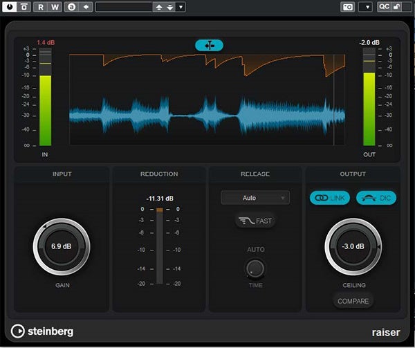 掛かり具合が可視化された多機能リミッタープラグインです。多様なリリースタイム設定により、パーカッシブな素材に対するアグレッシブなリミッティングや、フルミックスの自然な音圧上げなどに柔軟に対応します。