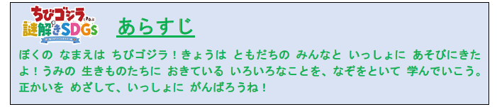 「ちびゴジラとまなぶ謎解きSDGs」を主催する(一社)謎解きエデュテイメント協会がLINEアプリで実施する謎解きゲーム「海なぞ水族館」に、『うみがたり』オリジナルの謎解きが登場します。