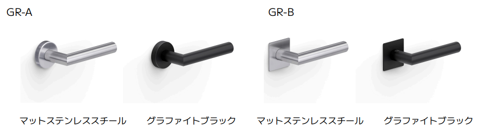 今回追加するGriffwerk社のハンドルデザインは、台座が丸形の「GR-A」と四角形の「GR-B」の2タイプで、カラーは「マットステンレススチール」と「グラファイトブラック」の2色です。