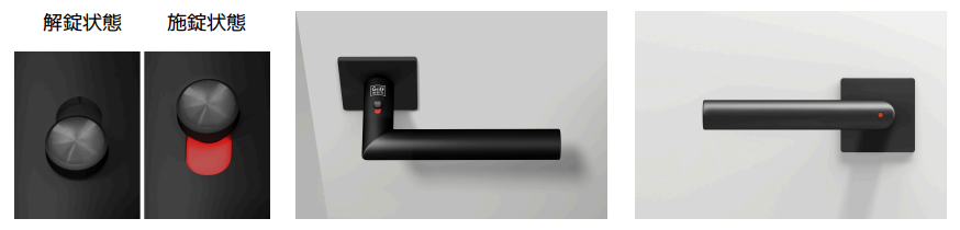 ハンドルにロック機構が組み込まれた錠一体型の仕様で、錠が見えないノイズレスなデザインを実現しました。片手で簡単に施錠・解錠ができ、ハンドル正面の赤いサインでスマートに施錠状態を確認できます。