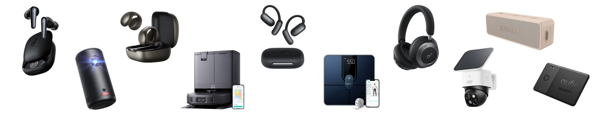 他にも、災害対策やアウトドアだけでなく、DIYのような日常使いにもおすすめのポータブル電源「Anker Solix C1000 Portable Power Station」は38%OFFの74,900円(税込)、「Anker 757 Portable Power Station (PowerHouse 1229Wh)」は50%OFFの84,900円(税込)で登場。さらに「Anker Prime Wall Charger(67W, 3 ports, GaN)」や「Anker Prime Power Bank(9600mAh, 65W, Fusion)」を初めとしたAnker最高峰充電器シリーズ製品に加えて、「Soundcore AeroFit 2」や「Soundcore C40i」のオープンイヤー型完全ワイヤレスイヤホン、全自動クリーニング掃除機「Eufy X10 Pro Omni」等、ベストセラー製品から最新の注目製品まで、全260製品以上が登場します。なおAnkerグループのAmazon プライムデー対象製品は「先行セール」にていち早くご購入いただけます。
