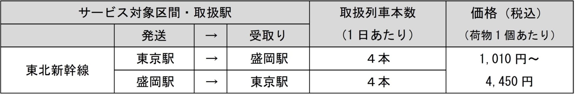 ※盛岡駅から発送する当日便の最終受付は、サービス対象列車の最終便の発車30分前までです。