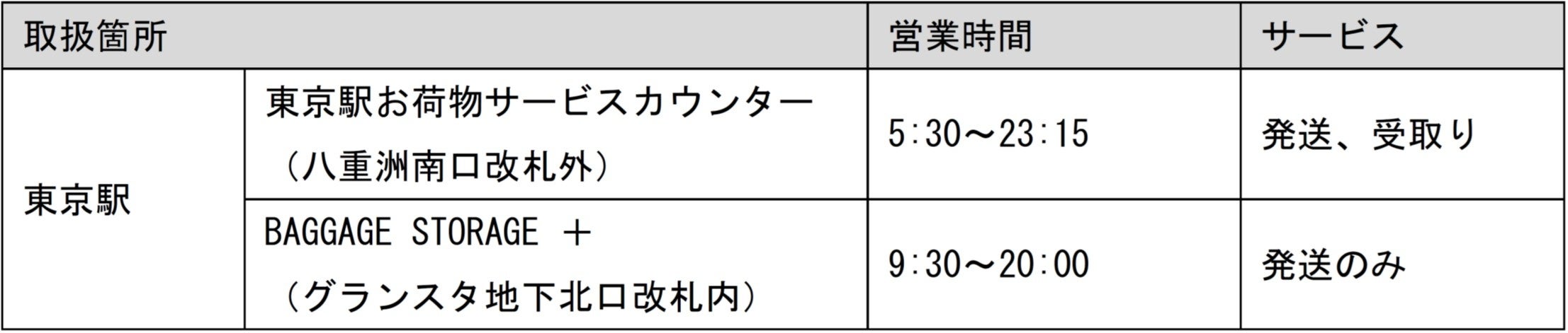 ※東京駅から発送する当日便の最終受付は、サービス対象列車の最終便の発車30分前までです。