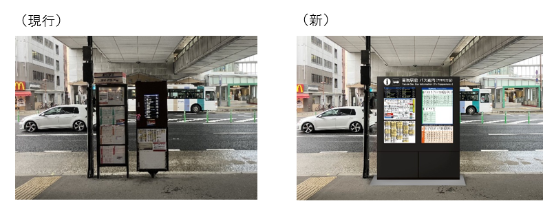 ※1 バスの時刻表や広告などをデジタルサイネージ上にリアルタイムに表示できるバス停。