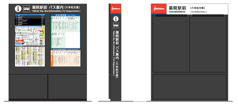 時刻表、運賃表、路線図、バス接近案内、お客さま向け告知文 など