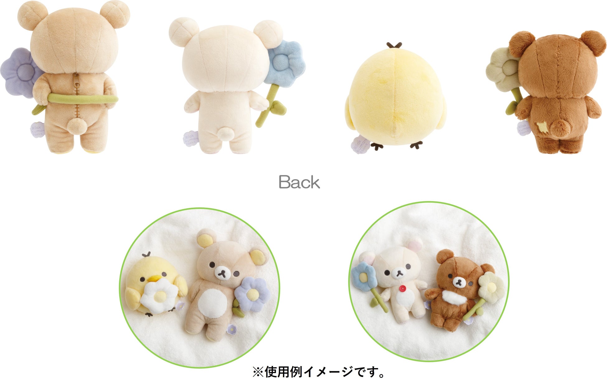 ぬいぐるみ素材のお花のワンポイントがかわいいトートバッグやおしゃれな刺繍のワッペンキーホルダー、トレンドのぬいぐるみ巾着など、リラックマたちとお花が作り出す、とことんシンプルにこだわったデザインとアイテムです。