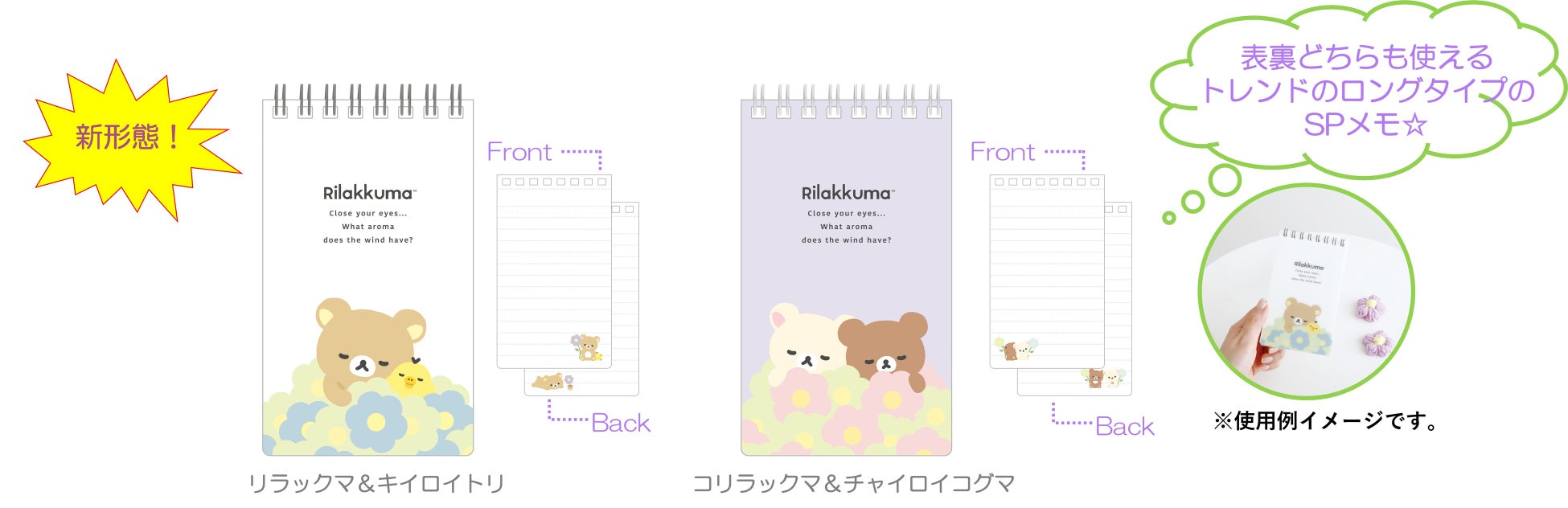 ・ロングSPメモ(各385円※税込):Wスプリング製本・マイクロミシン目入り・カラフル本文50枚