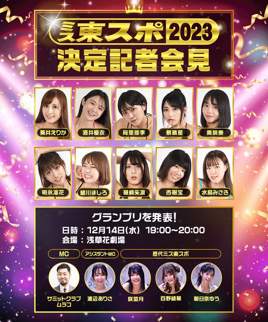 ミス東スポ2023 グランプリ発表イベント12/14(水)開催!マシェバラ配信の視聴は無料
