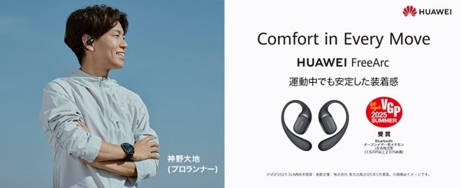 華為技術日本株式会社(ファーウェイ・ジャパン)は、日本国内最大級のオーディオビジュアルアワード「VGP2025 SUMMER」にて、『HUAWEI FreeBuds 6』、『HUAWEI FreeClip』、『HUAWEI FreeBuds SE 3』が金賞、『HUAWEI FreeBuds Pro 4』と『HUAWEI FreeArc』が受賞したことをお知らせします。