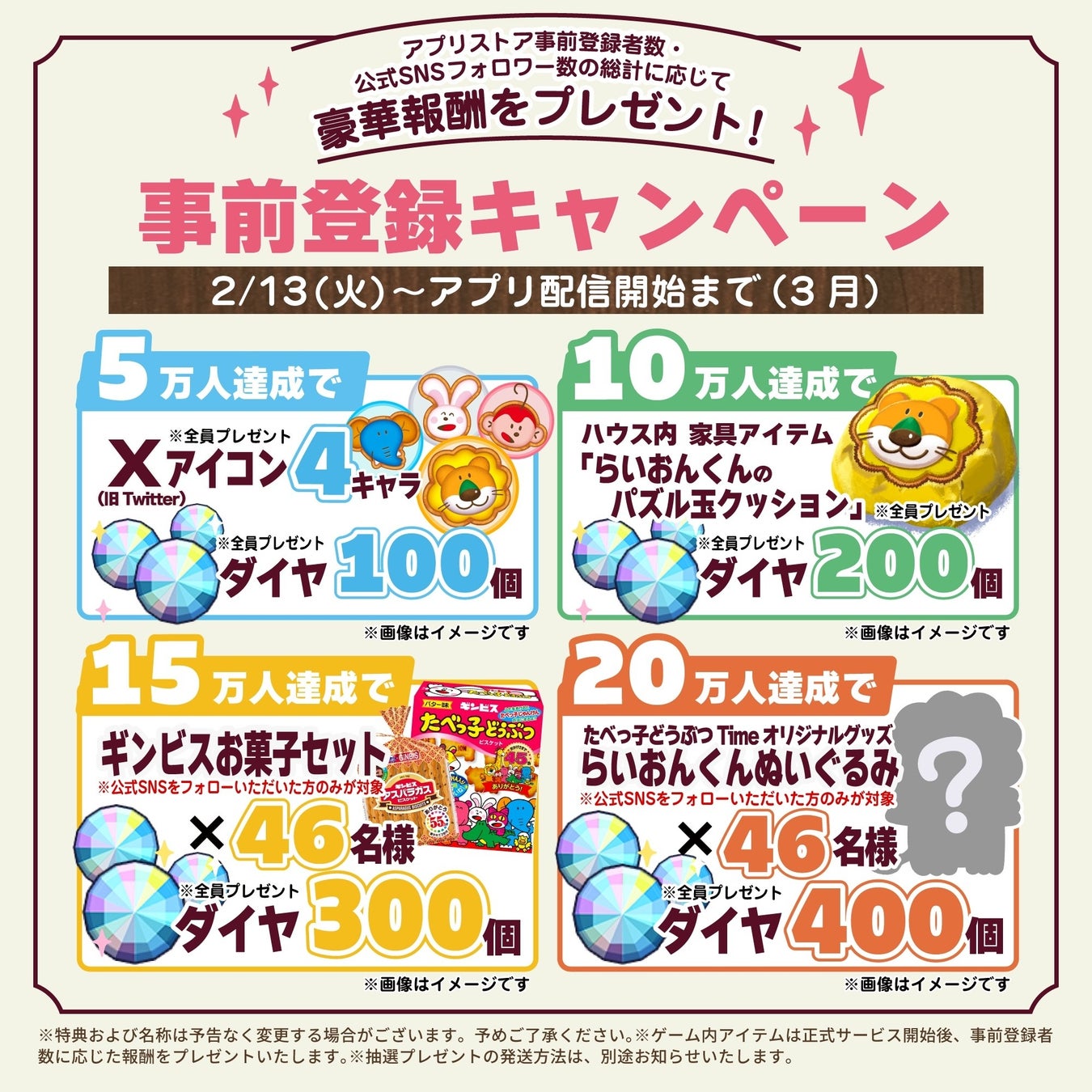 『たべっ子どうぶつTime』事前登録キャンペーン 詳細