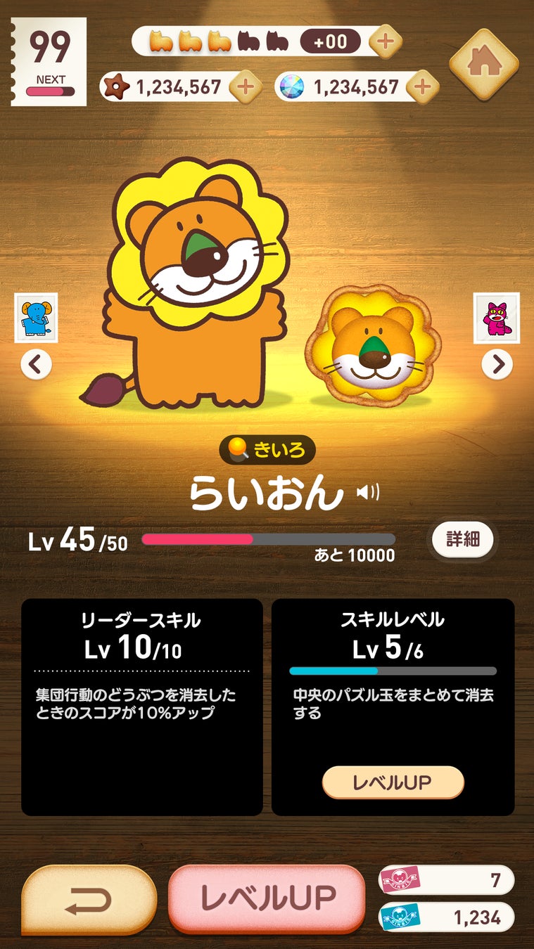 どうぶつたちのレベルを上げてスコアアップを目指そう!