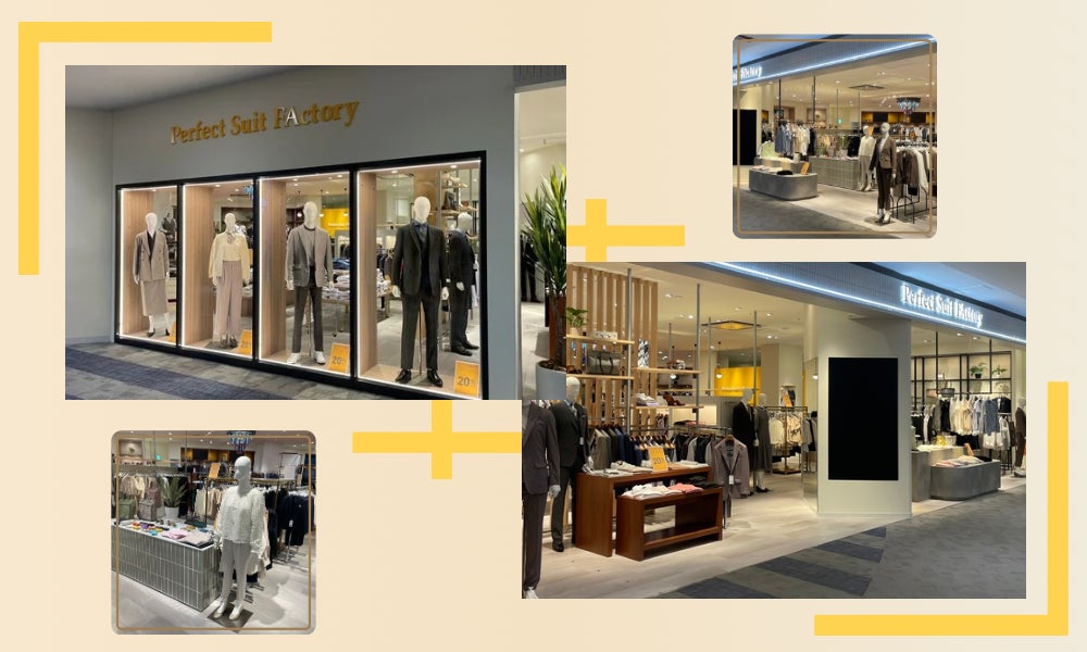 HAL SUITからイメージを一新したニュースタイルショップ。重厚感あるスーツショップからオープンで都会的な印象にオフィスカジュアルを拡充させた新しいP.S.FAが登場