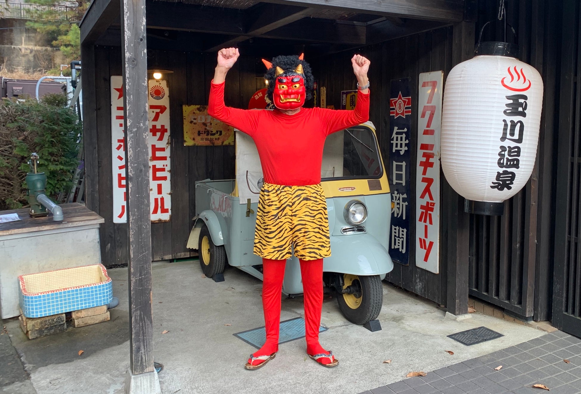 全国でも珍しい鬼をまつる神社「鬼鎮神社」協力のもと、昭和レトロな温泉銭湯 玉川温泉にて節分の豆まきを実施