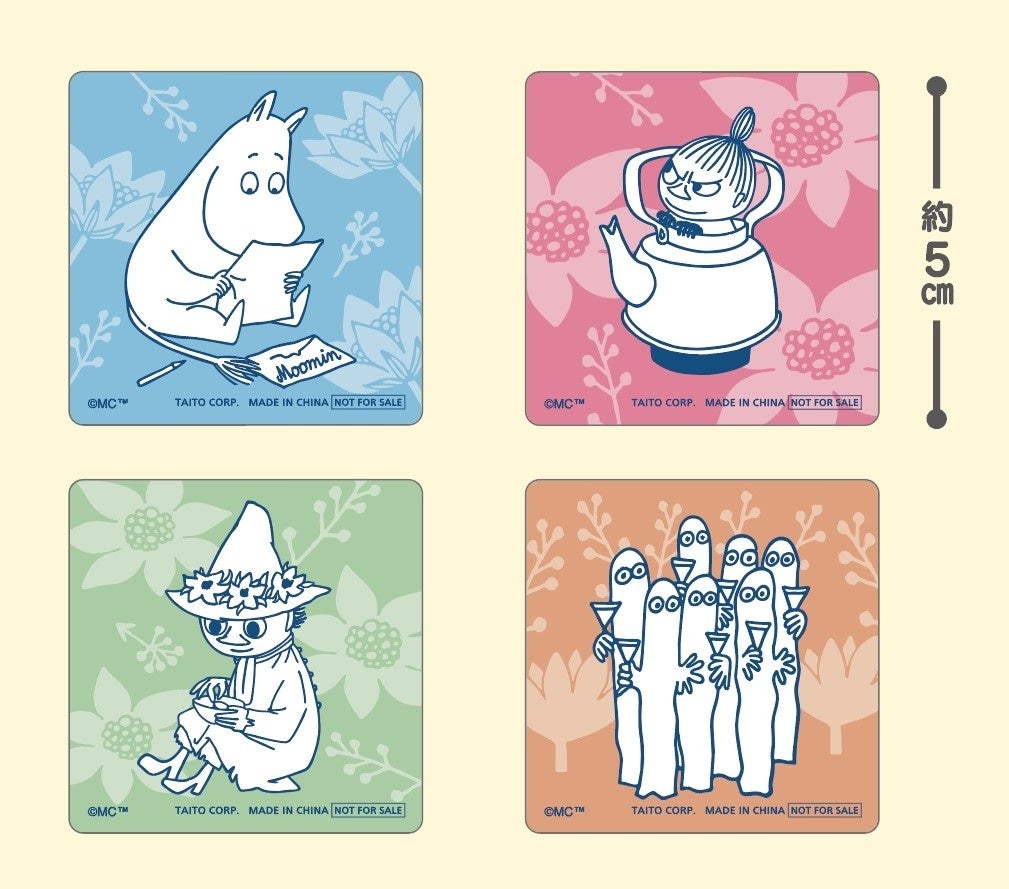 7月19日(土)より登場する「ムーミン 特大サイズぬいぐるみ ムーミンの日 2025」を対象に、600円投入でオリジナルステッカーを1枚プレゼントいたします。ステッカーは全4種類でムーミンと仲間たちがデザインされています。7月19日(土)より全国のアミューズメント施設にて展開を予定しております。