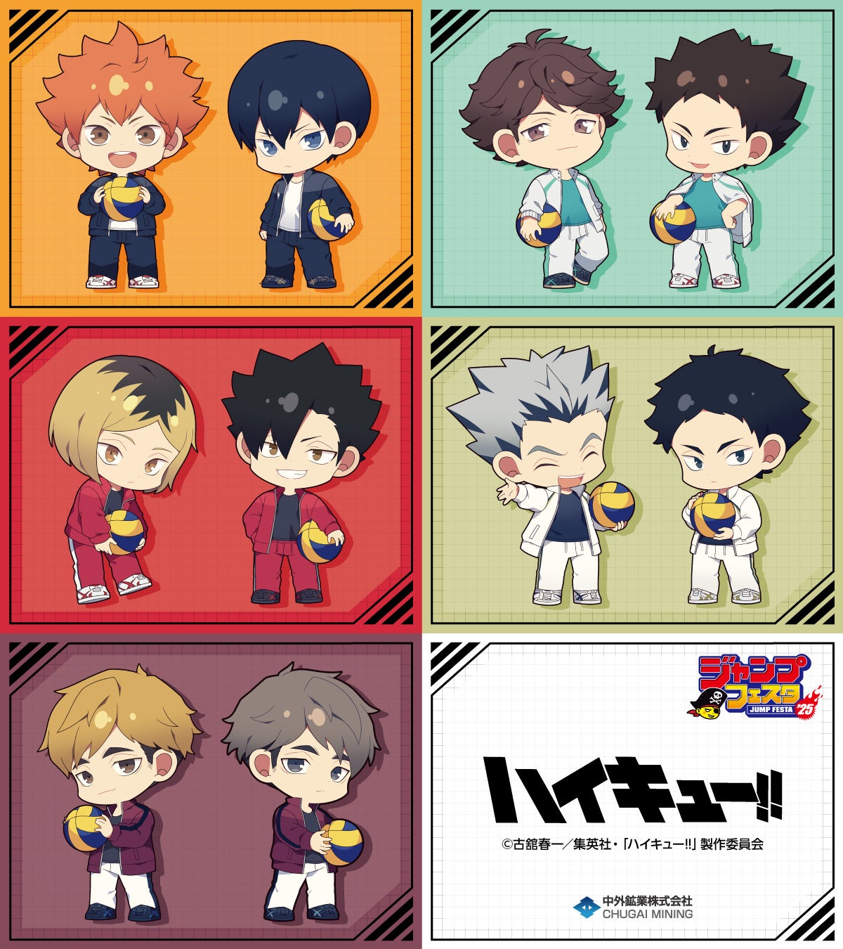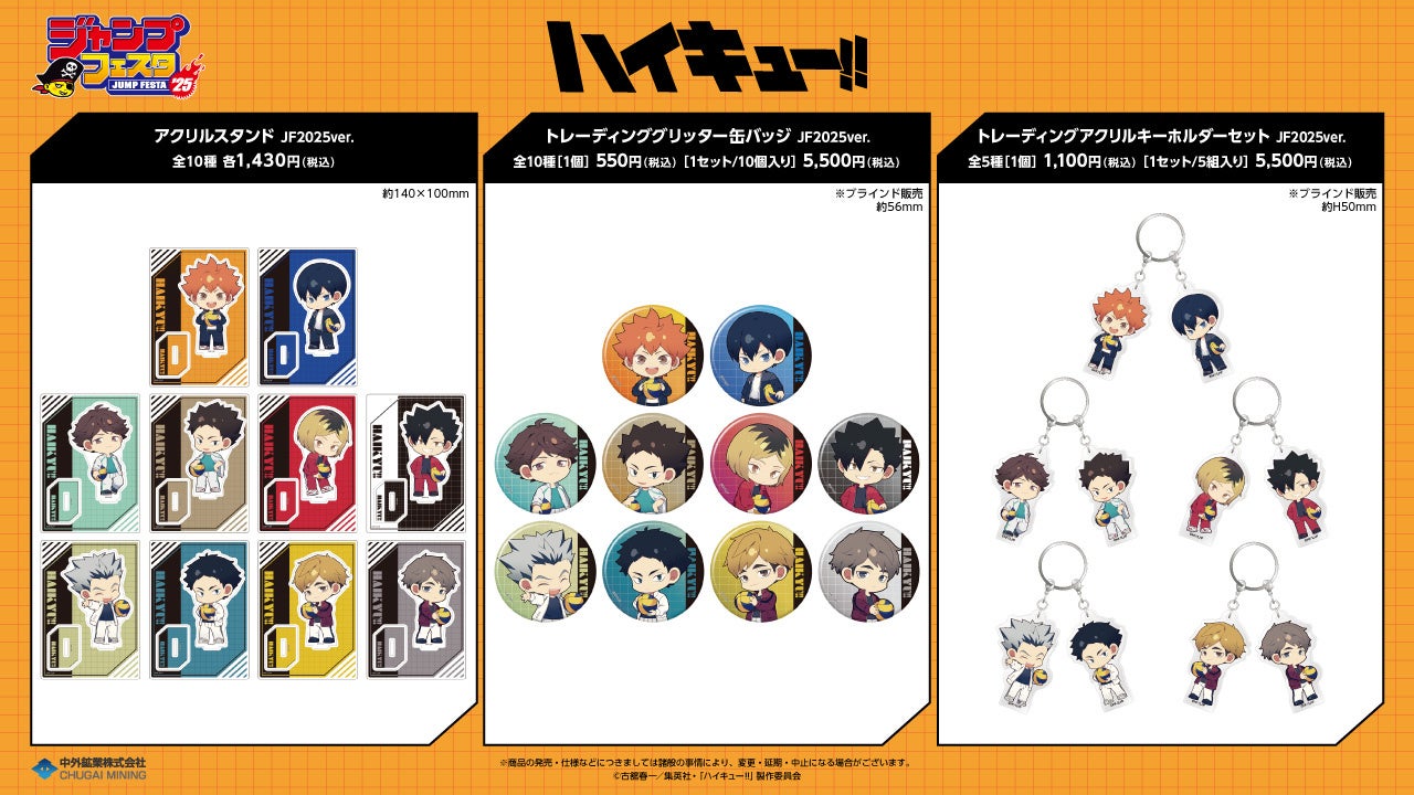 アニメ「ハイキュー!!」より、日向や影山たち総勢10人の描き起こしミニキャライラストの新作アイテムが「ジャンプフェスタ2025」で登場!中外鉱業ブースにて販売決定!