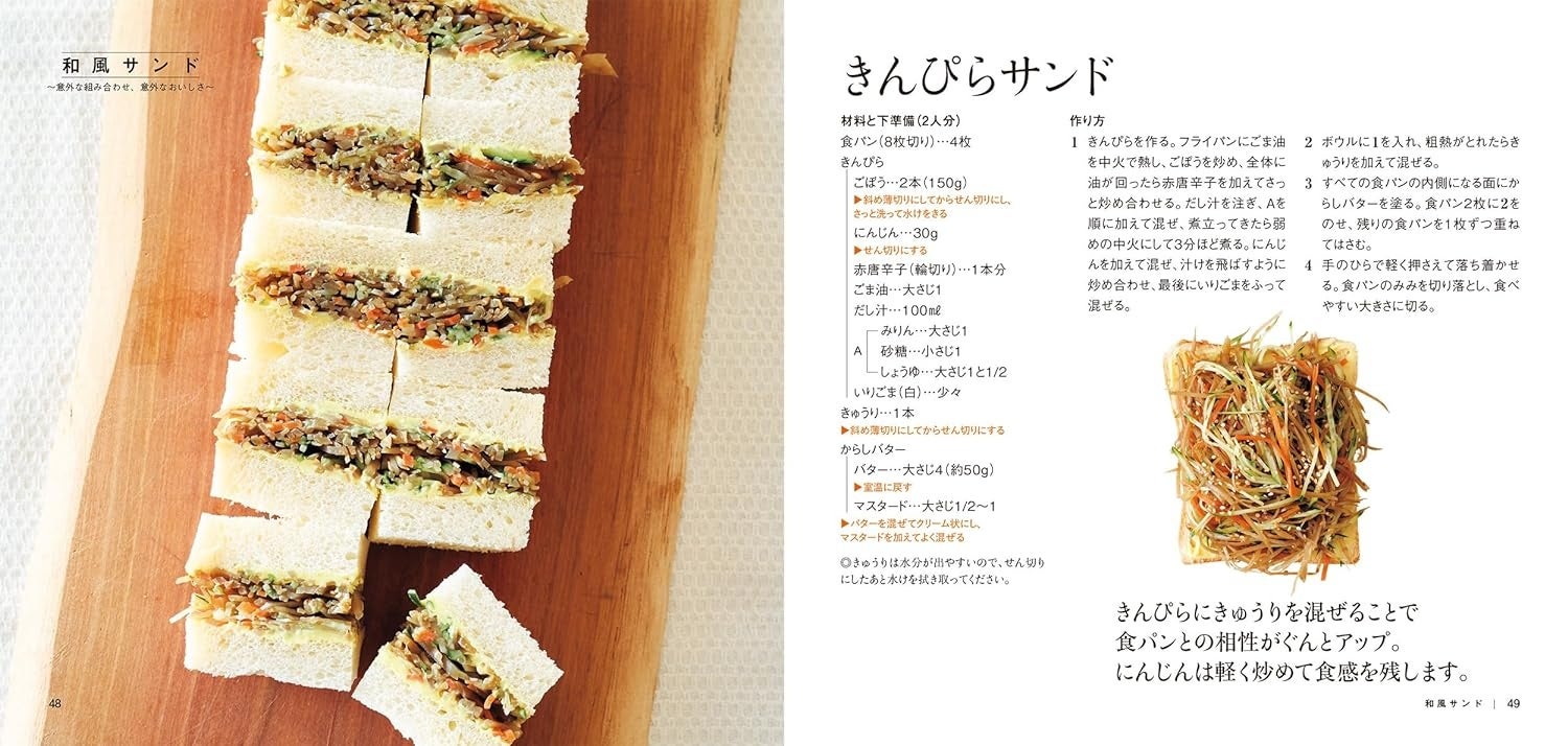 簡単でおいしい家庭料理のレシピを極めた大庭さんならではの、シンプルでおいしいサンドイッチのレシピを45種類ご紹介しています。