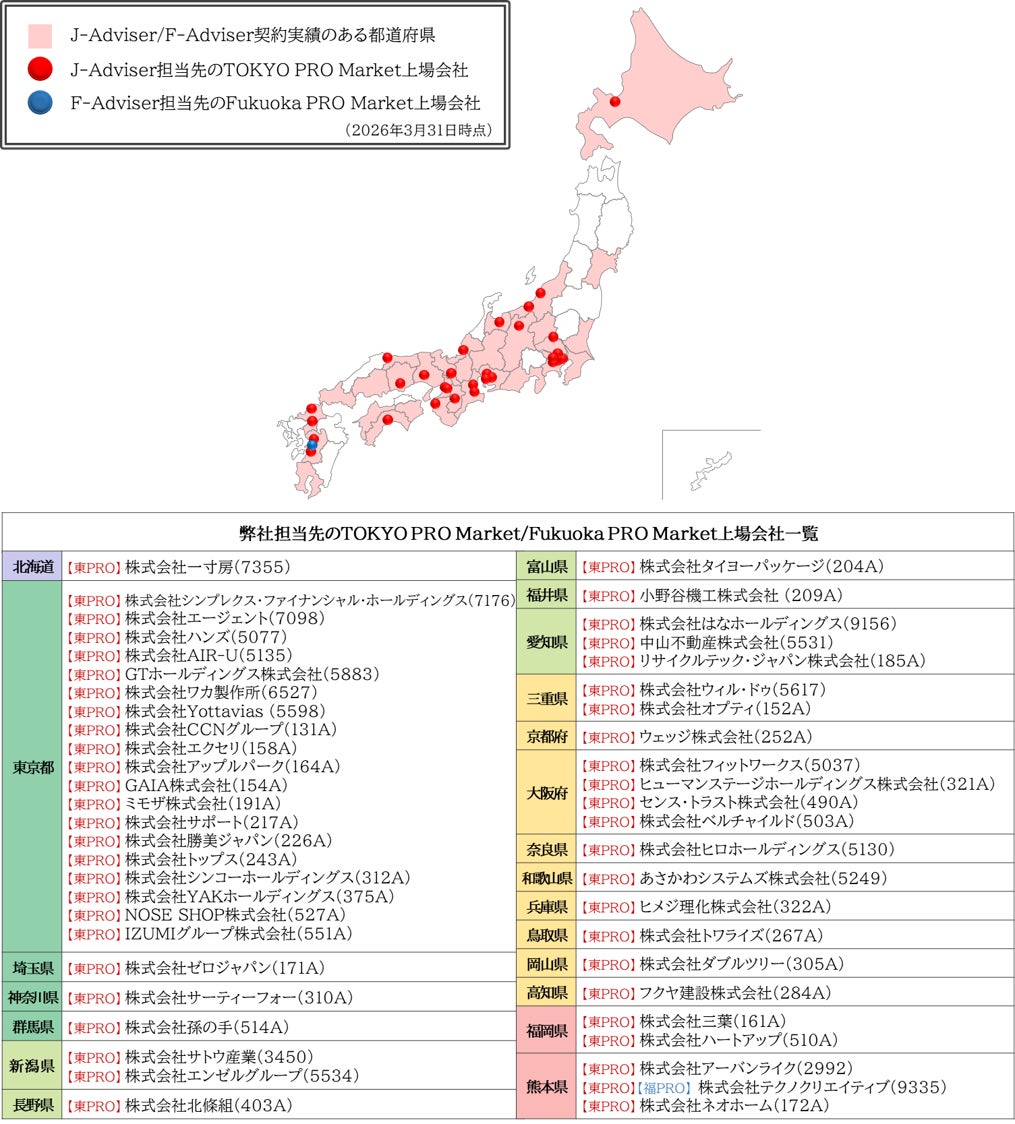 また、2024年12月には、福岡証券取引所が運営するプロ投資家向け市場、Fukuoka PRO Marketの上場指導・審査を行うF-Adviser資格も取得いたしました。