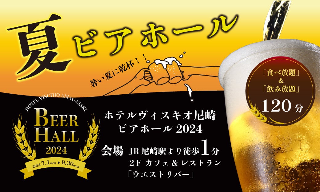 【ホテルヴィスキオ尼崎】快適なレストランで天候の心配なし!食べ放題&飲み放題120分!ビアホール2024開催のご案内