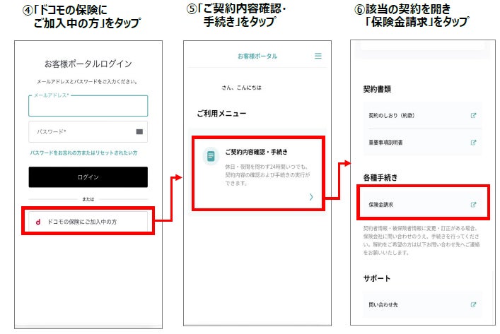 「d払い」アプリ内の「保険ポータルサイト」より保険金請求のお手続きが可能です。※画像は イメージです。