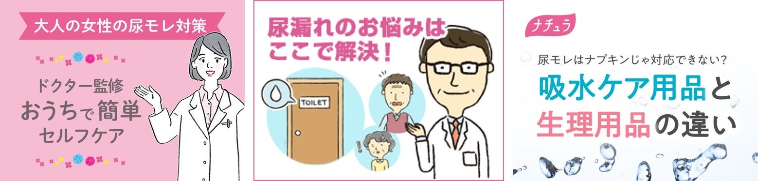 A:尿意を少しでも感じたら、カラダからの危険信号だと思い、すぐにトイレを探して行きましょう。また、ご自身の症状やライフスタイルに合わせた吸水ケア品を持ち歩くことをおすすめします。症状のない方もお守りとして持ち歩くと、外出時の不安がなくなり、精神的に落ち着く効果があります。