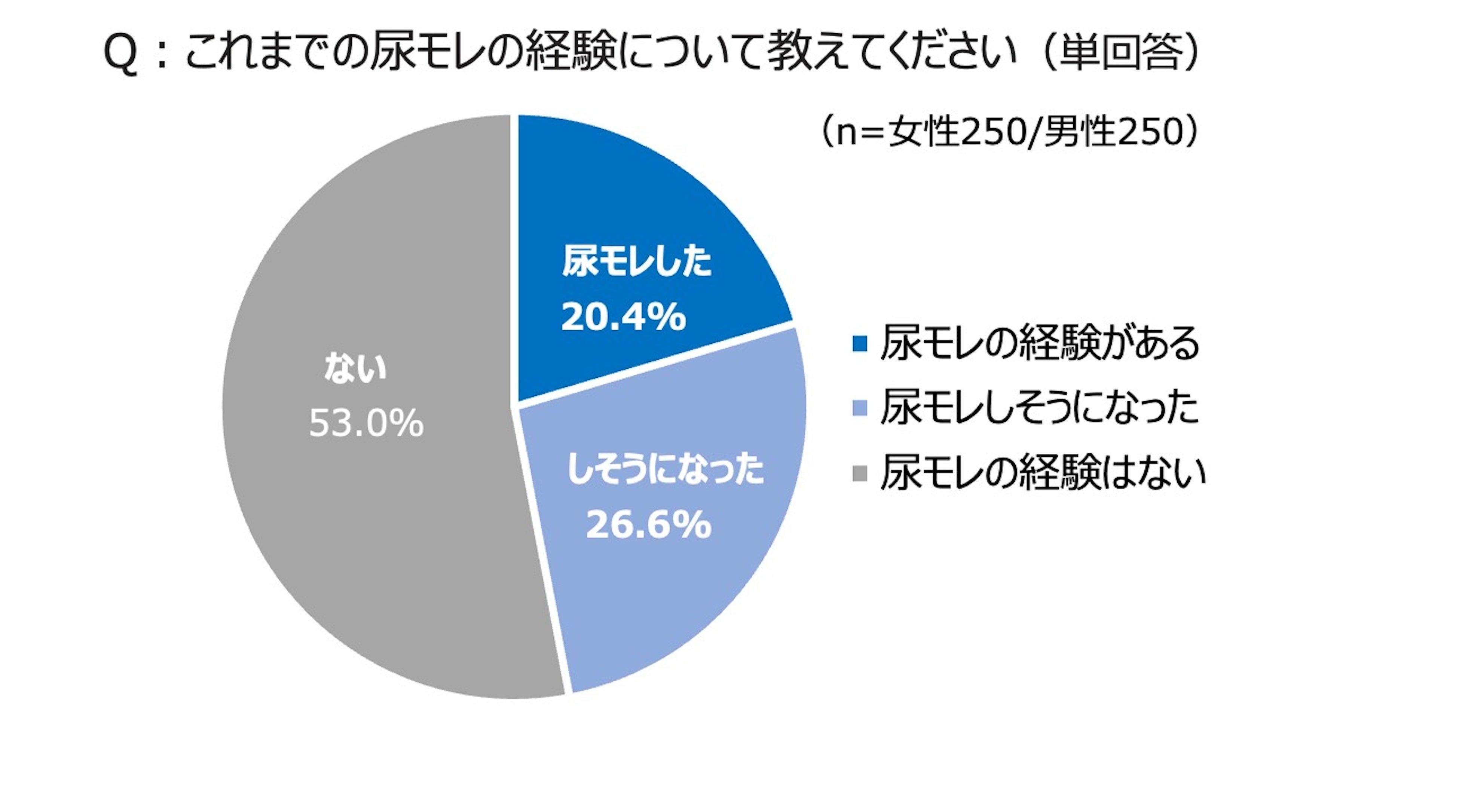 これまでの尿モレ経験は? 約2人に1人(47.0%)がヒヤリ経験があるものの