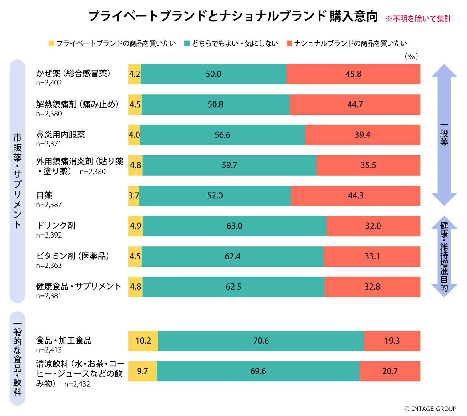 市販薬・サプリメント購入時、「プライベートブランドかナショナルブランドか気にしない」人は半数以上