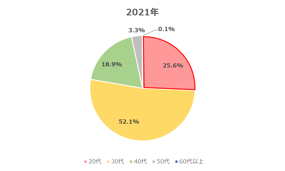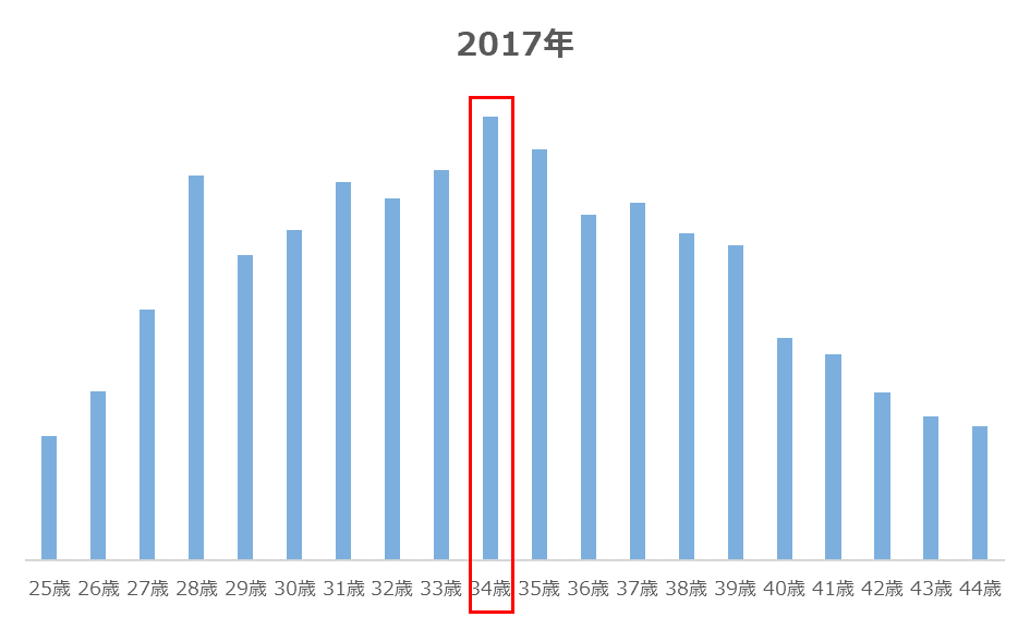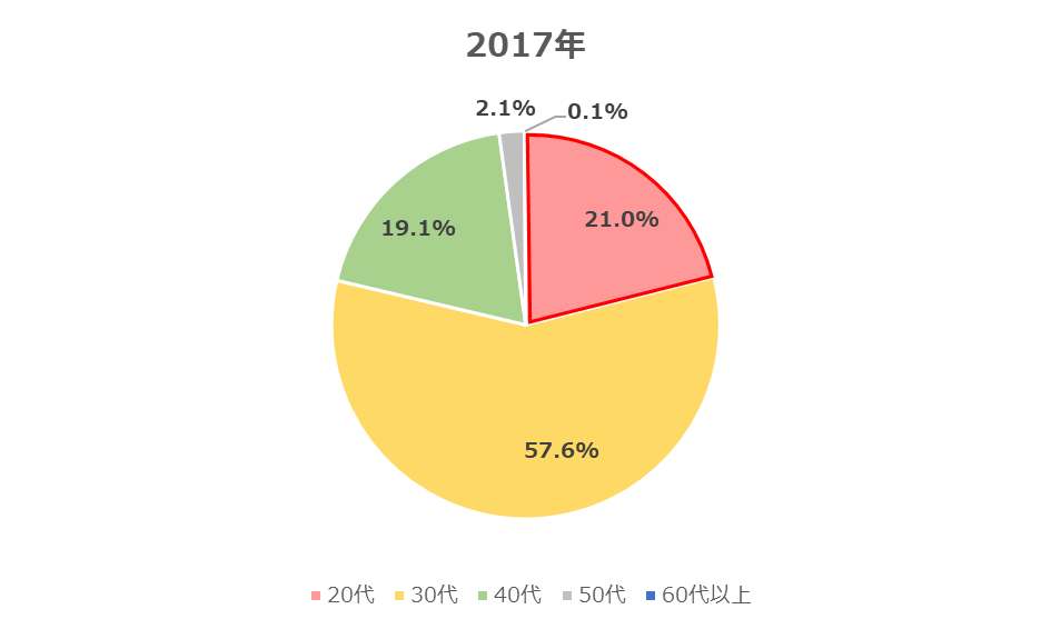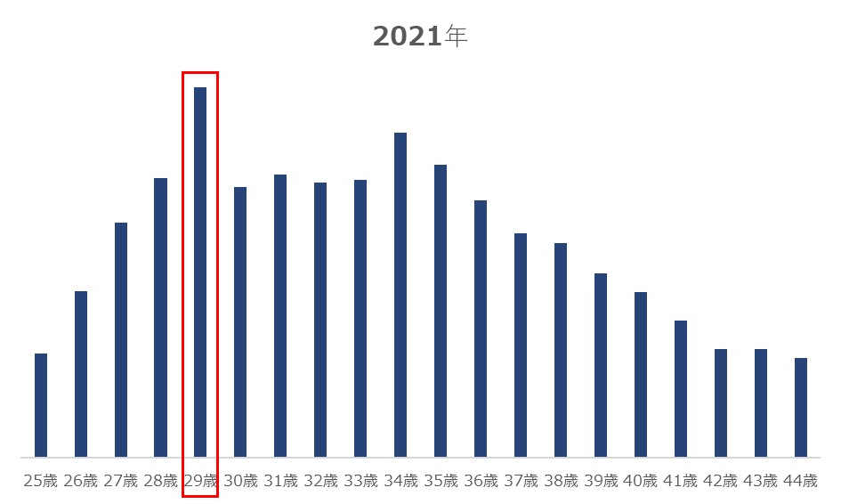 また、具体的な年齢を見たところ、ご入会者数がもっとも多い年齢は2017年では34歳でしたが、2021年は29歳となり5歳の差が出る結果となりました。