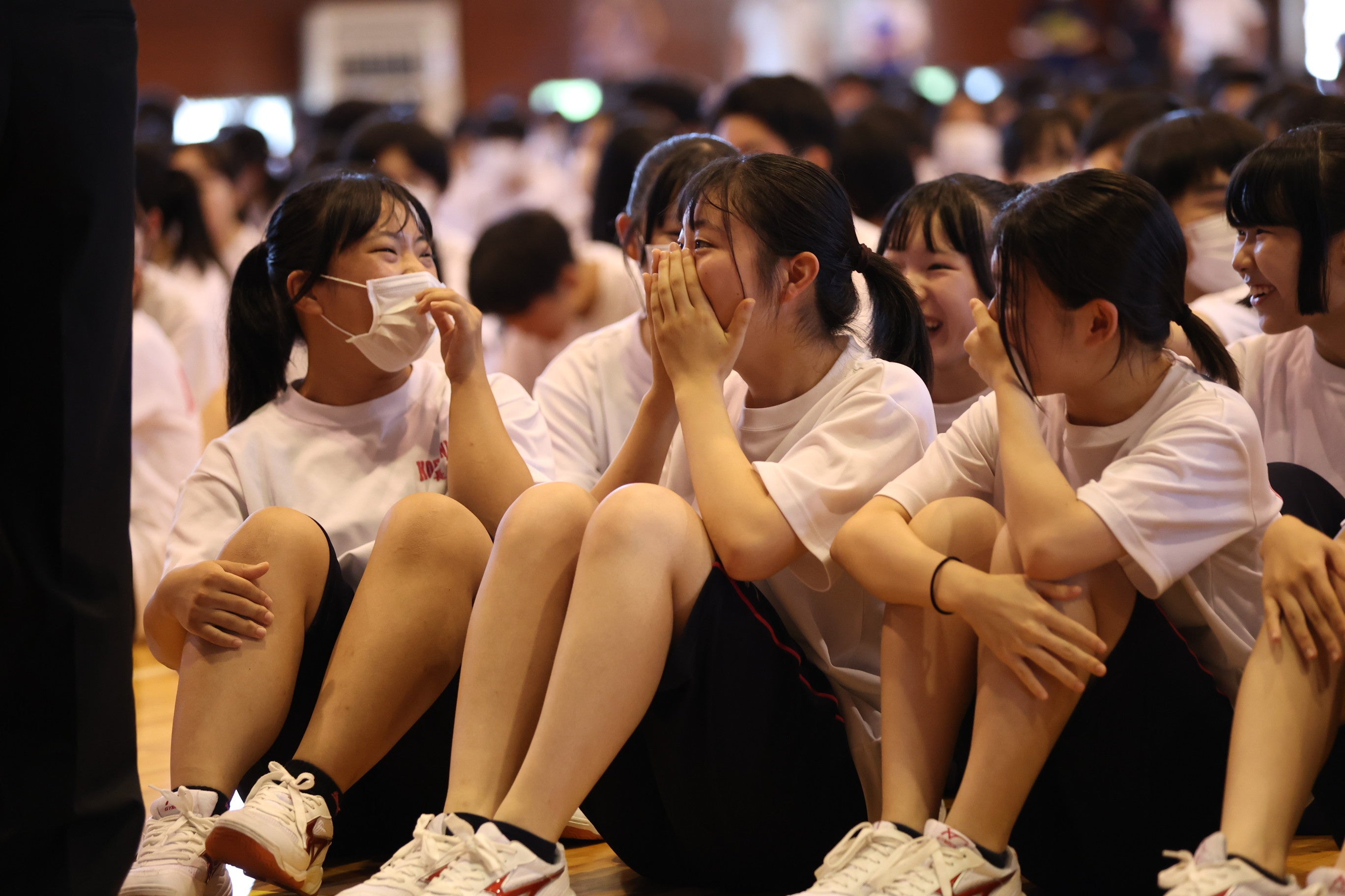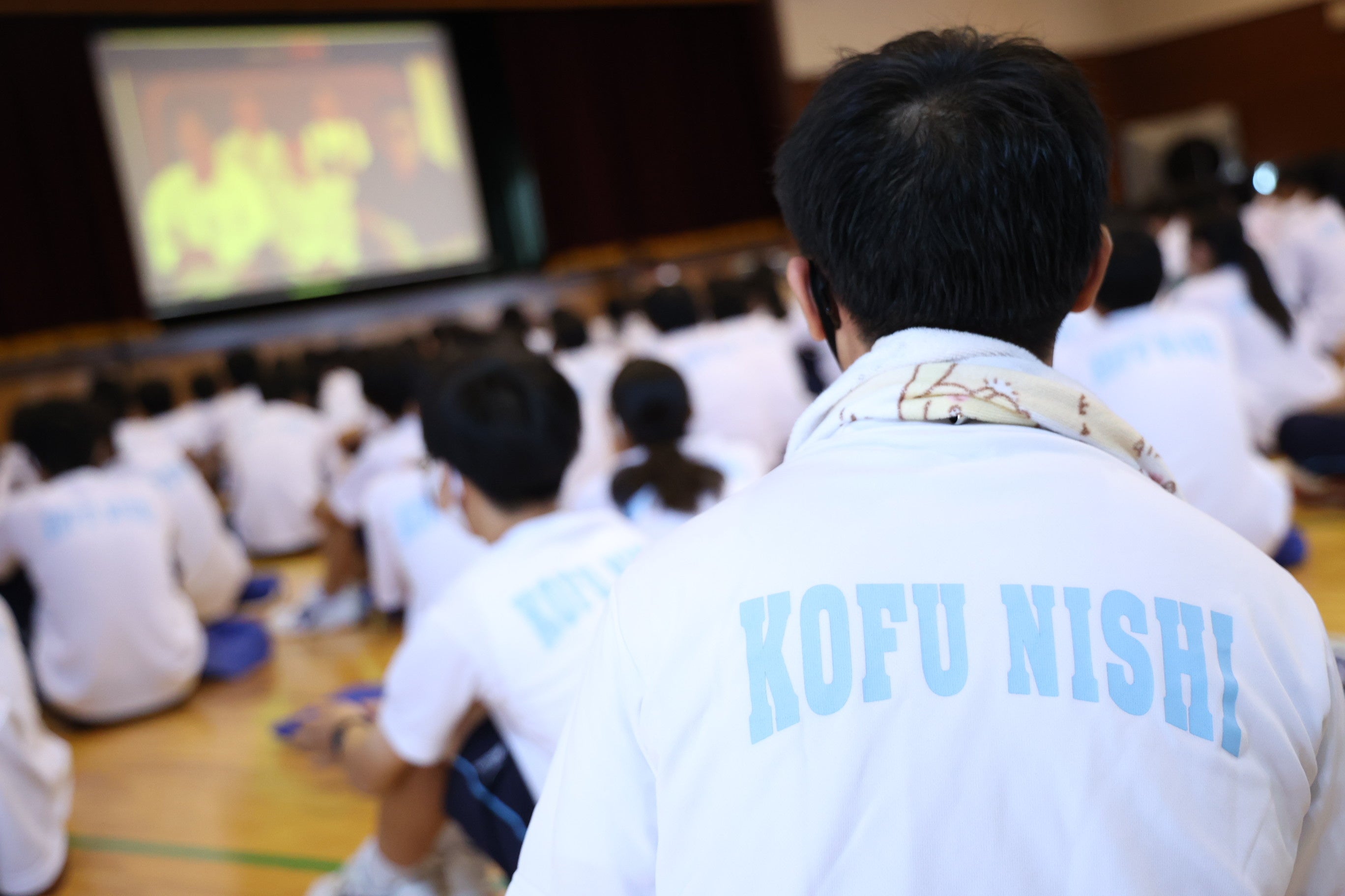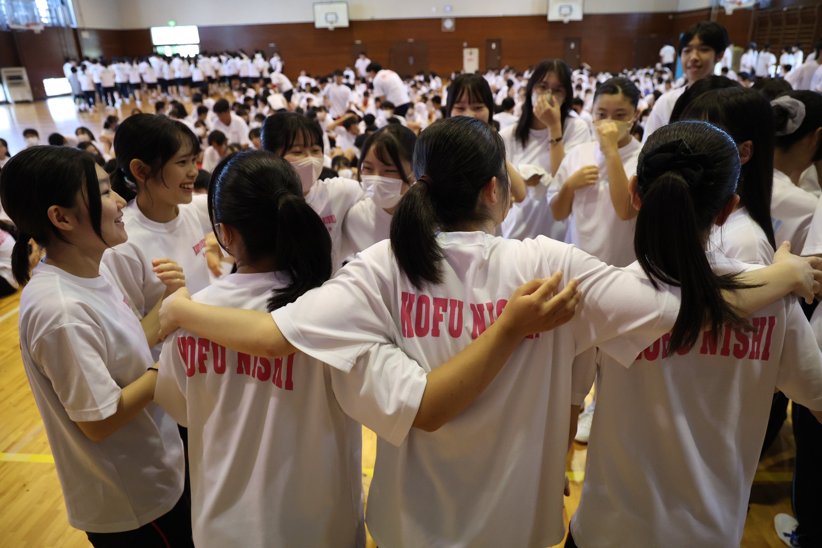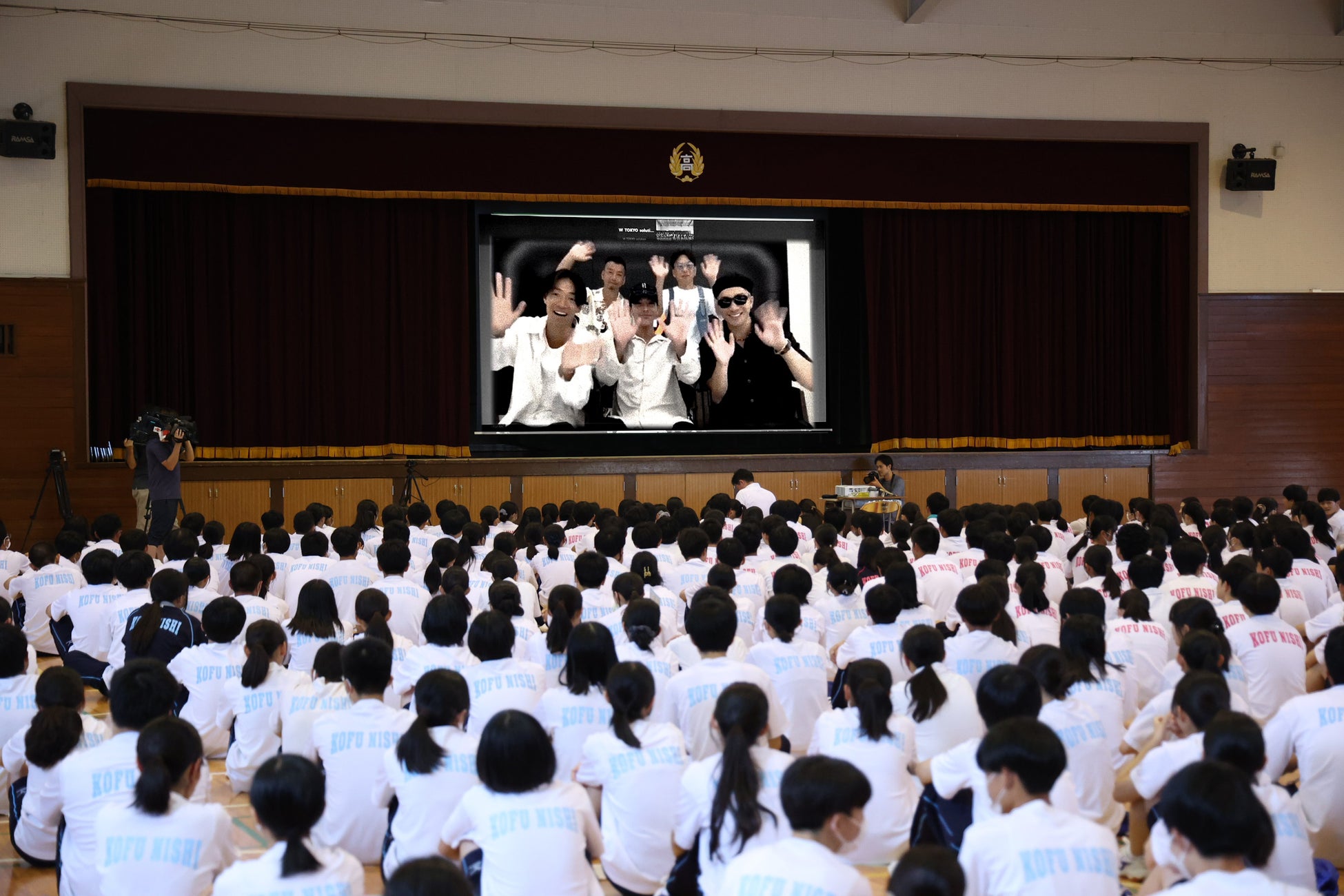 夏休み明けの初日である全校集会にてサプライズ発表された当プロジェクト。モニターにDOBERMAN INFINITYが映し出された瞬間、前方に集められたダンス部の部員からは大きな歓声が上がり、拍手が巻き起こりました。SWAYは「(コラボレーションすることを)喜んでくれている姿を見て、ライブが更に楽しみになりました。僕たちはLDHの中でも踊らないグループなので、まさかダンス部のみんなと共演できるなんてとても嬉しい。」とコラボレーションすることの喜びを伝え、KAZUKIは「僕たちは踊らないけどマイクで踊らしてきたから(笑)みんなはダンスで、僕たちはマイクで会場を踊らせたい。」と意気込みを語りました。GSは「僕らもみんなの熱に負けないようパフォーマンスをするので、一つになって会場全体を盛り上げましょう」、KUBO-Cは「楽しく、気楽に。僕らは踊らないから、みんなに盛り上げてほしい。」、P-CHOは「最高のステージを一緒に作って、TGC フェス 山梨 2023を盛り上げましょう!」と、それぞれエールを送りました。
