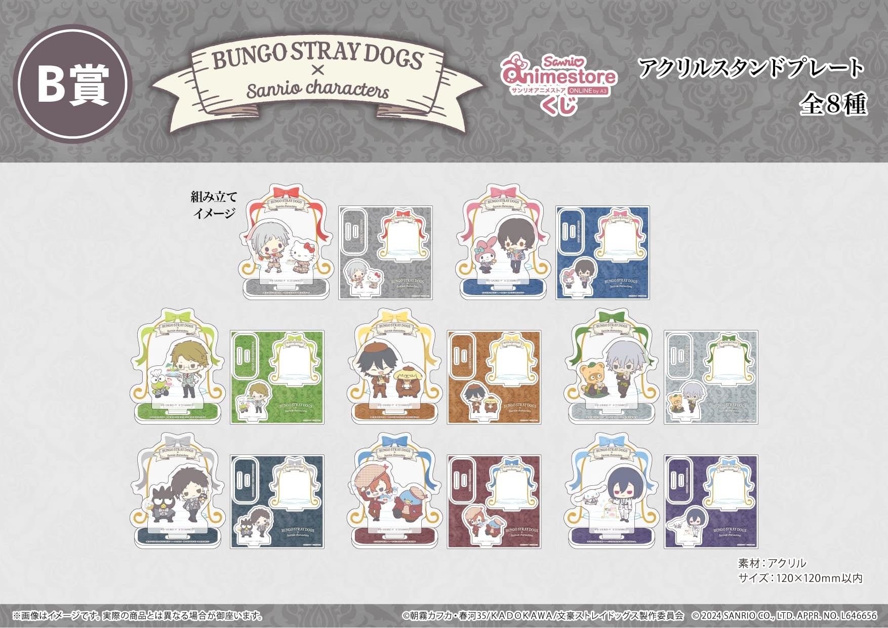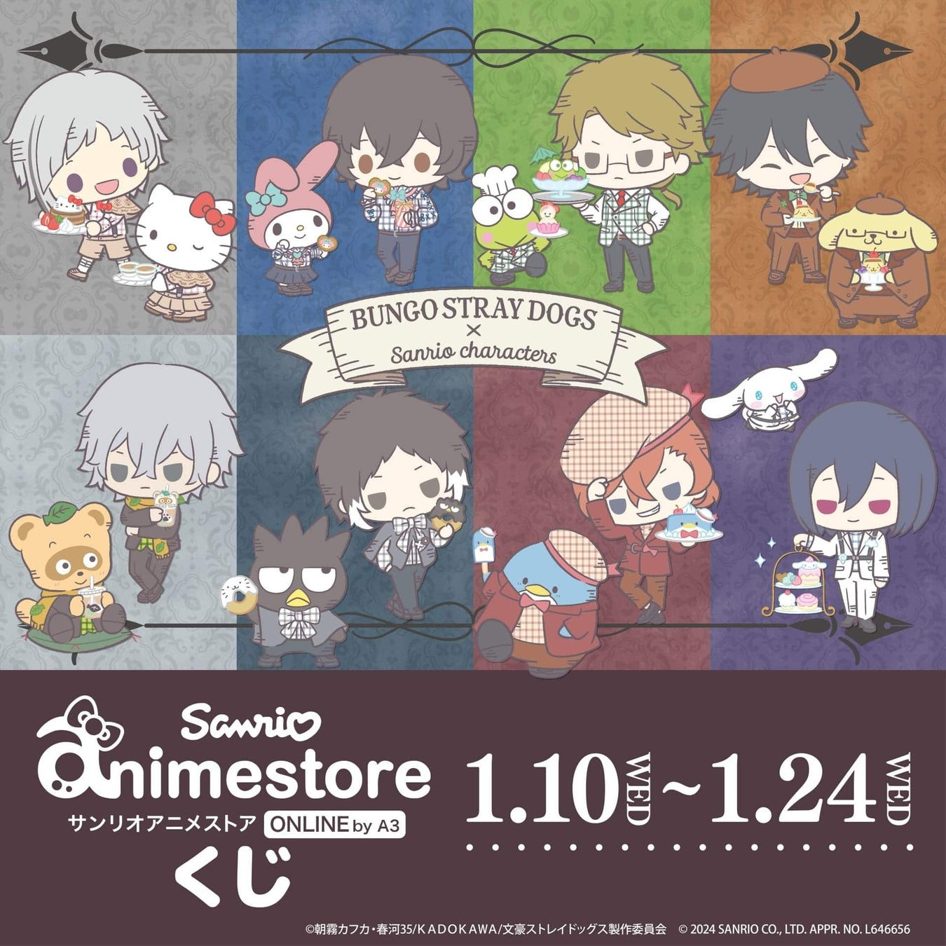 「文豪ストレイドッグス×サンリオキャラクターズ」のオンラインくじ「サンリオアニメストアくじ」が、2024年1月10日よりサンリオアニメストアONLINE(通販)にて販売されます。