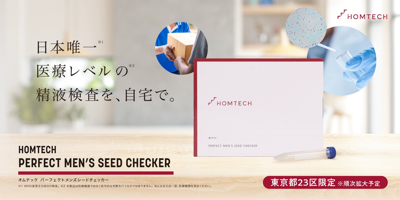独自の配送技術で自宅から精液を配送 病院へ行かずに、自宅でWHO基準の精密な精液検査が行える「HOMTECH 宅配精液検査サービス」を開始!