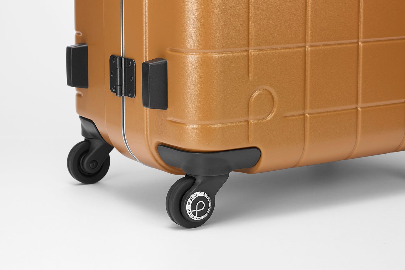 フレームタイプスーツケースは、堅牢でスーツケースの形状保持力が高く、衝撃が加わった際に中身をしっかり守ります。また、気密性が高いため雨に強く、液体物が外に漏れにくいという特徴があります。さらに、蓋を開け閉めするように簡単に開閉できるのも利点です。プロテカのフレームタイプスーツケースは、熟練の職人が経験と知識を基に専用のハンマー・工具を用いて歪みを微調整することで、高い気密性を実現しています。