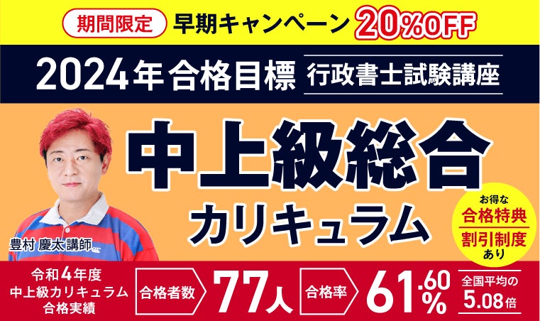 【2024年合格目標】行政書士試験 中上級・上級総合カリキュラム(フル・ライト)リリース!