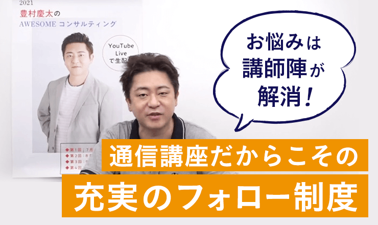 毎月のお悩みを、豊村講師が解消します!みなさまからのアンケートをベースに毎月、勉強方法やメンタルをサポートさせていただくAWESOMEコンサルティング。