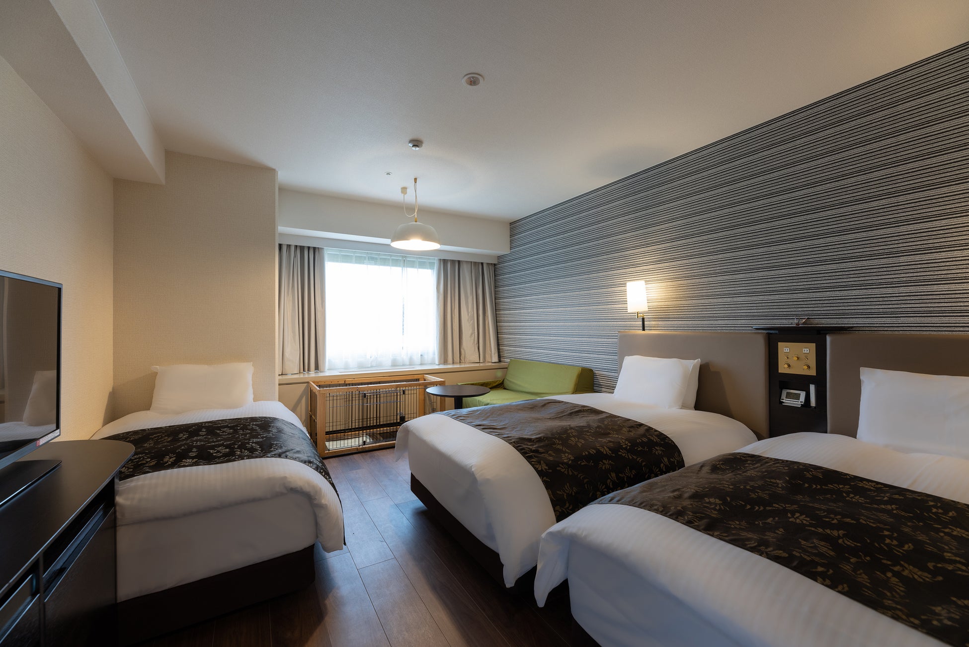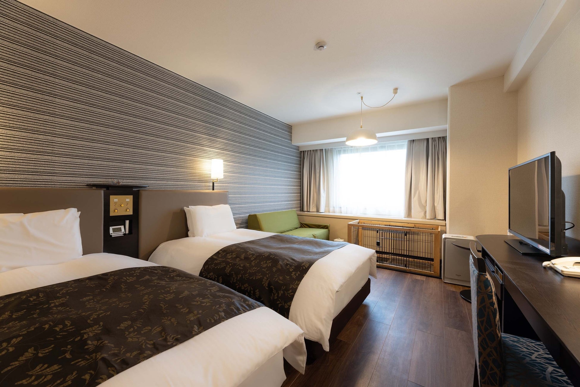 客室説明 | わんちゃん同伴可の客室です。わんちゃん専用アメニティをご用意しております。 【ドッグサークル、フードボウル、水飲み用のボウル、消臭スプレー、トイレシート&トレイ、蓋つきダストボックス、粘着クリーナー、ウェットティッシュ】 |