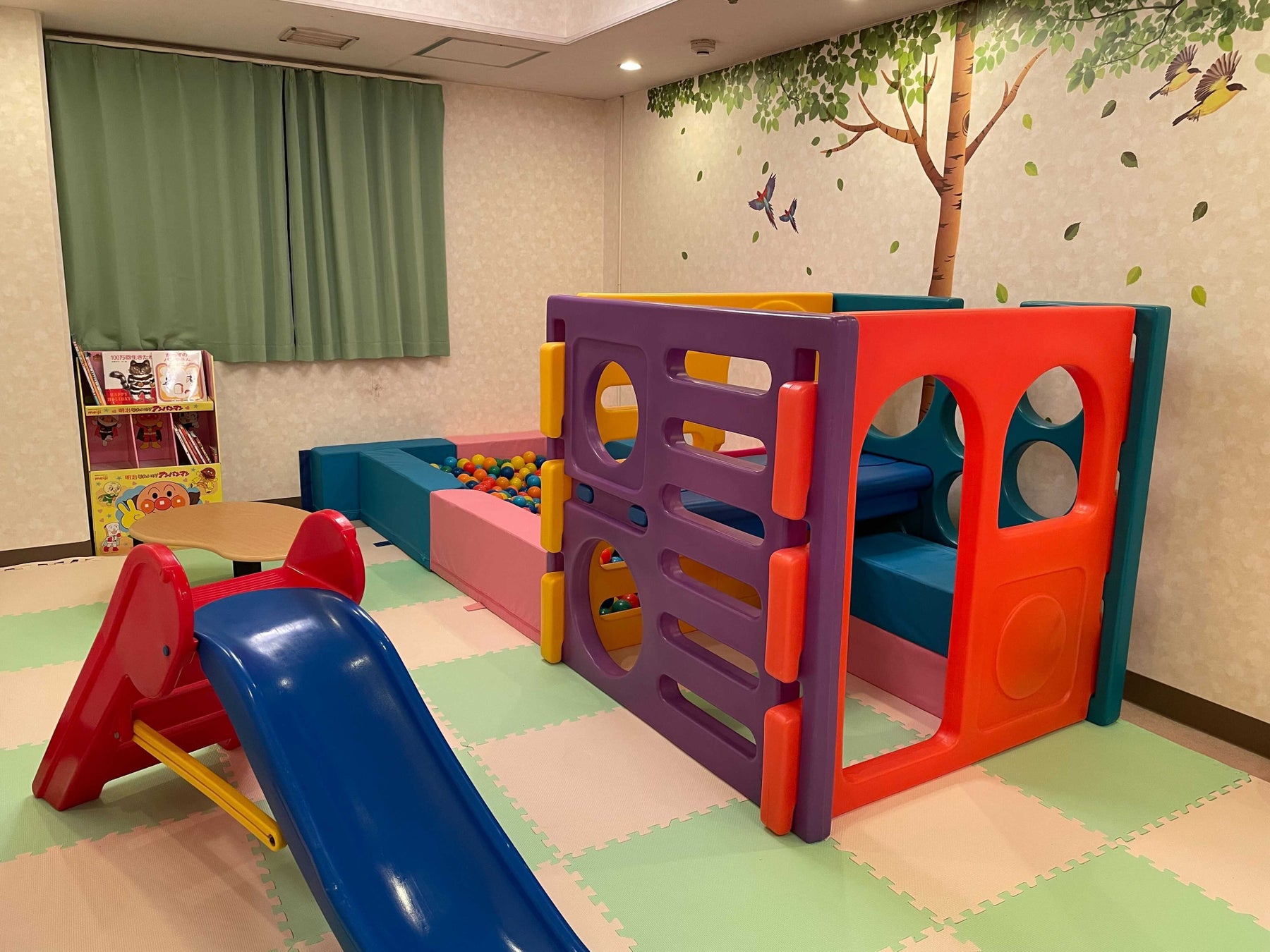 チェックインの際に小学生以下のお子さまがお待ちいただけるスペース「キッズスペース」を新設し、ボールプールや滑り台、絵本を設置。また、一部のアクティビィ(パターゴルフ・ディスクゴルフ・3on3バスケットボール等)を宿泊者限定で無料提供とし、貸出遊具(竹馬・縄跳び等)の充実も図った。その他、売店でのおむつ・日焼け止め・スタイの販売、ベビーベッド・子ども用浴衣・スリッパ・アメニティセットをご用意し、お子様連れの需要を獲得していく。