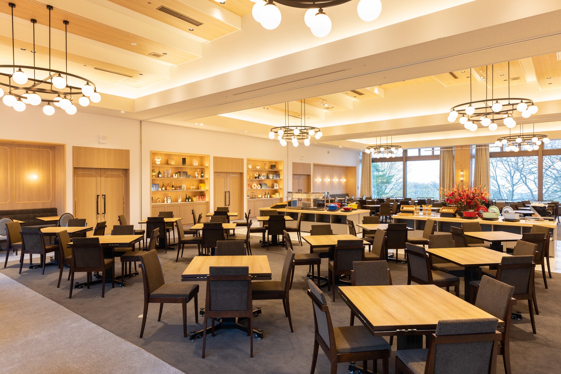 2022シーズンに行った本館2階のRRR Restaurant(フレンチステーキハウス)・Bar & Lounge(バー&ラウンジ)の全面リニューアルに続き、今シーズンは本館3階のバンケットホールのリニューアルを実施。今回のリニューアルでは、朝食会場や大規模宴会場、会議室として使用する本館3階のバンケットホールの内装を一新し、明るく開放感のある空間へと生まれ変わった。本館2階RRR Restaurant・Bar & Loungeと合わせて、レストラン全体として高級感のある空間演出を実現する。