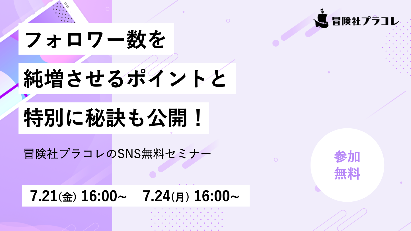 【参加無料】総フォロワー数96.5万人の企業が教える!『フォロワー数を純増させるポイント』セミナー。 更に、特別に秘訣も公開!